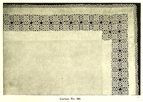 För två veckor sedan skrev jag om Bohusrutan, och om mina upptäckter kring dess ursprung. Den verkar ju egentligen inte ha så mycket med Bohuslän att göra. Här är en inscannad bok från 1914 (cirka?) som heter "Old and new designs in crochet work" av Sophie Tatum La Croix. Hela boken finns med, sida för sida, och man kan bläddra fram och tillbaka. Bläddra ett par sidor så finns den där, bohusrutan! Den finns på bild både på sidan 5 och 6, utförd som två olika versioner av gardiner. Fast den ena ser för mig mera ut som en duk, där rutorna bildar en inramning av kanten och hörnet.